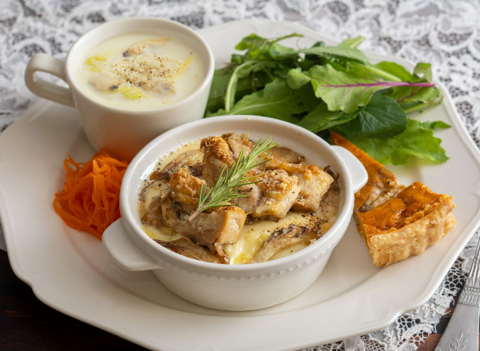 選べるスープ、メルスリー自慢の特製キッシュとメインプレート