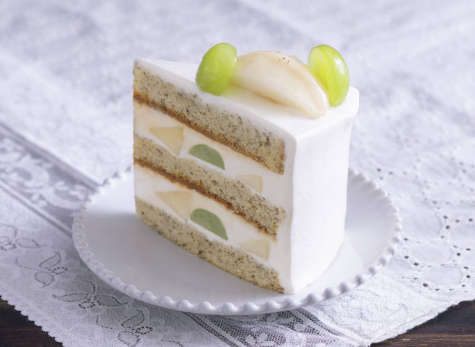 旬のラ・フランスをアールグレイ香る紅茶スポンジでサンドした贅沢なショートケーキ。