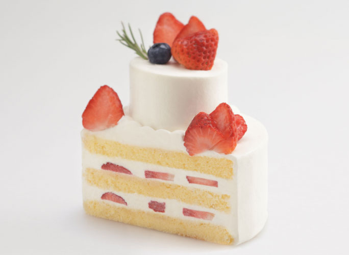 ふわふわのスポンジとなめらかなホイップクリーム、甘酸っぱいいちごをサンドした特製のショートケーキにカスタードロールケーキをのせて豪華なデコレーションで仕上げました。
